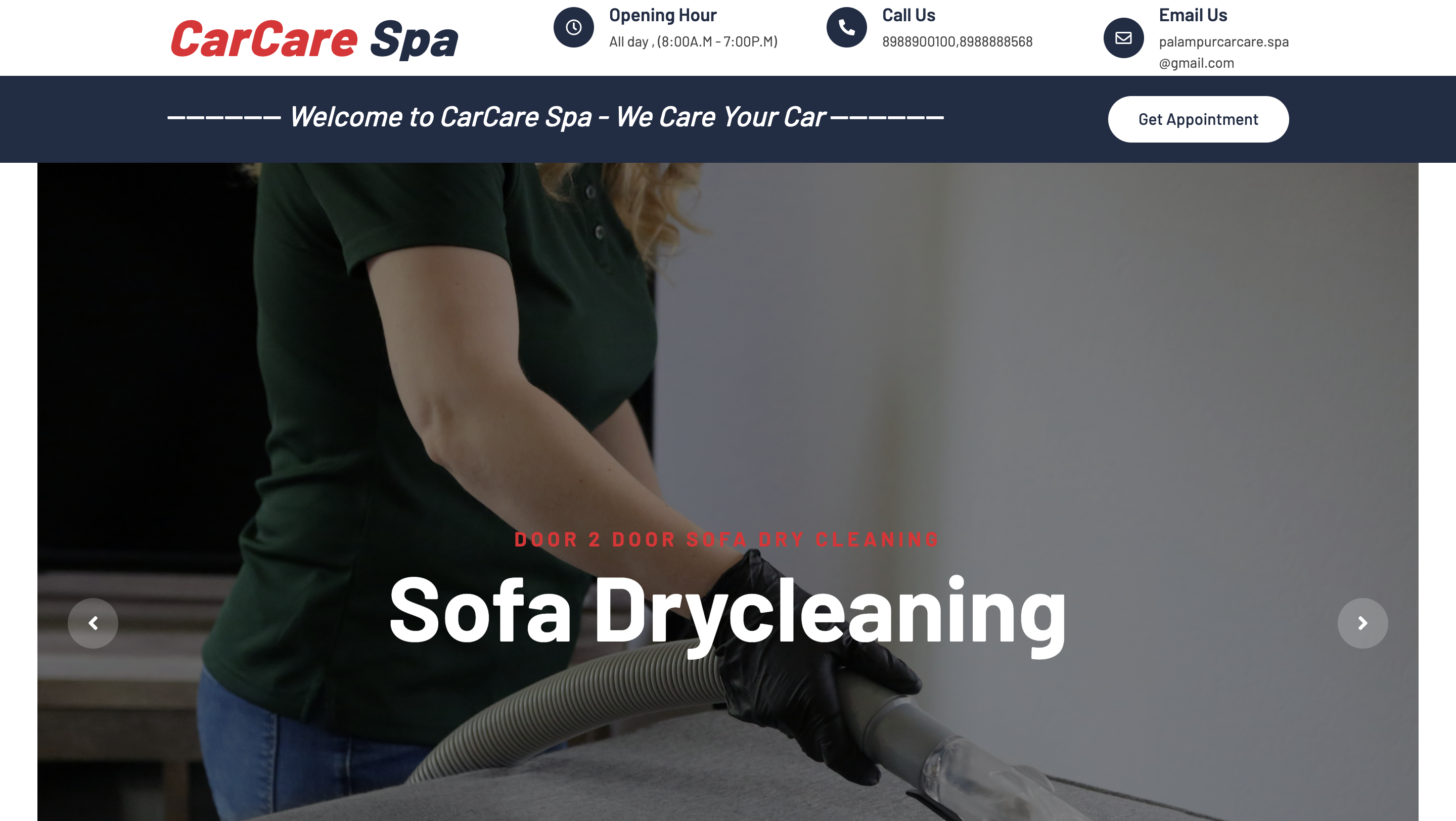 This is a responsive Car Washing Station Website built using HTML, CSS, and JavaScript, designed to showcase premium car cleaning and detailing services. Inspired by platforms like Car Care Spa, the website offers an engaging and user-friendly interface for potential customers to explore available services and book appointments.