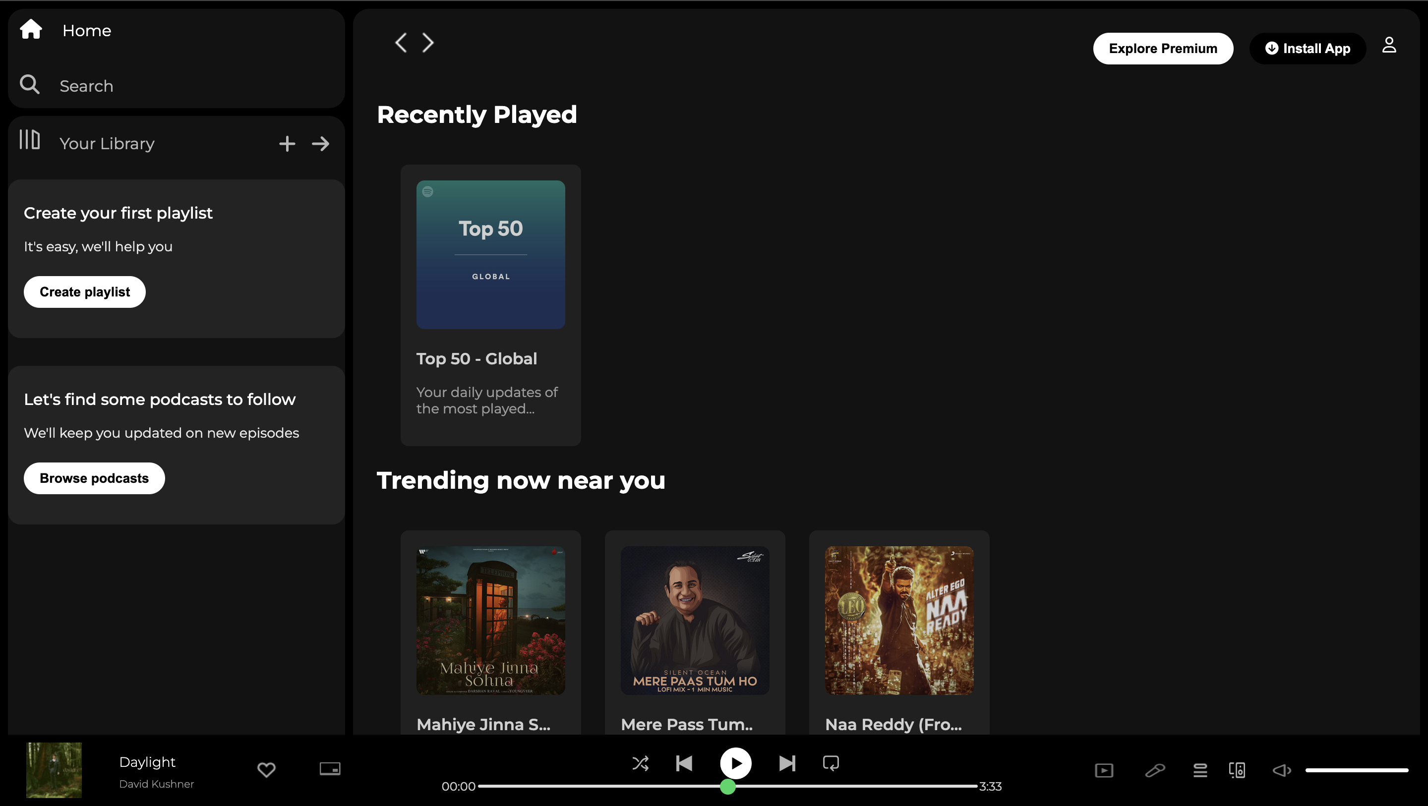 This project is a responsive Spotify web clone built using only HTML and CSS. It mimics the basic structure and design of the original Spotify web interface, offering an interactive and visually appealing layout.